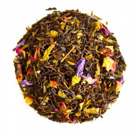 Zutaten: Schwarztee, Sencha Grüntee, Rosenblüten, Saflorblüten, Malvenblüten, Aroma.