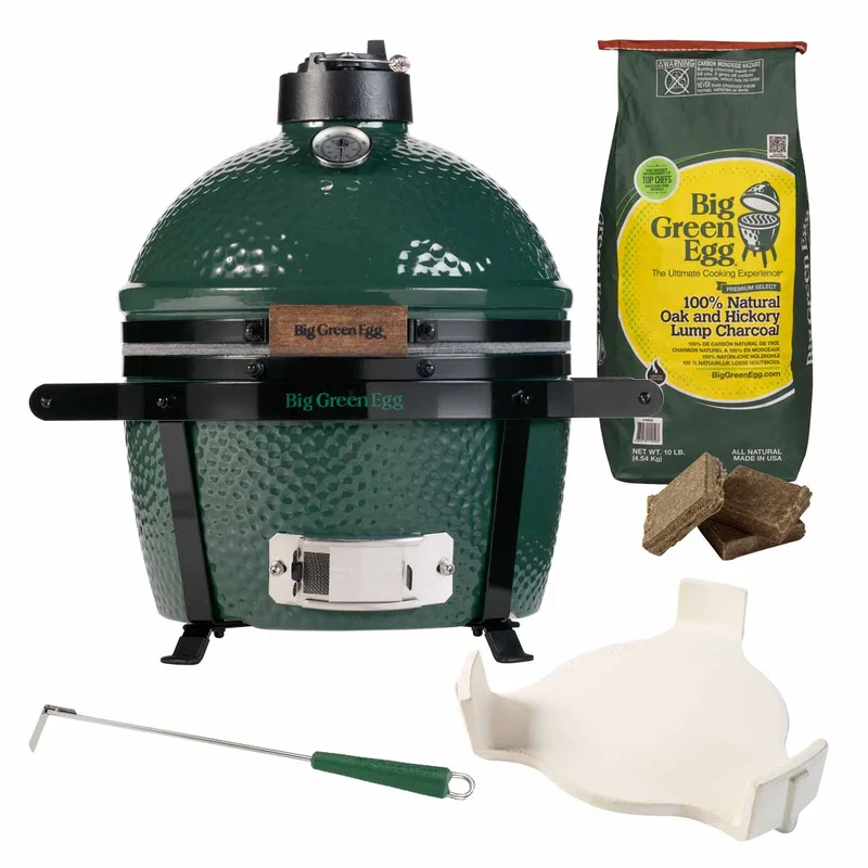 Big Green Egg | Minimax Komplettpaket Big Green Egg Minimax Starterpaket mit viel wichtigem Zubehör. Einfach sofort losgrillen. Big Green Egg genießt weltweiten Kultstatus. Die grünen Eier begeistern heute den Profi im Restaurant genau wie den ambitionierte Freizeit Griller. Das Big Green Egg Minimax finden Sie in vielen Küchen der Spitzengastronomie. Es ist der perfekte Kompromiss zwischen Platzbedarf und BBQ Möglichkeiten. Der Big Green Egg Grill wird in Mexico nach den höchsten Qualitätsnormen produziert. Im Vergleich zum kleinen Mini ist sein Bruder Minimax zwar nur sieben Zentimeter größer, doch die machen einen ganz deutlichen Unterschied. Wie der Mini, lässt er sich ebenfalls gut auf Tischen platzieren und auch noch zum Campen mitnehmen. Er bietet die gleiche Grillrost Größe wie der Small, ist dabei aber deutlich mobiler. Minimax Starterpaket: Big Green Egg Minimax Carrier mit Griffen Conveggtor für indirektes Grillen Big Green Egg Holzkohle 4,5kg Grillanzünder Ascheschieber Big Green Egg Das Big Green Egg Minimax ist nur 7cm höher als das Big Green Egg Mini – aber der Durchmesser des Rost entspricht dem des Big Green Egg Small. Darum bietet das Minimax Platz genug für ein BBQ mit bis zu 6 Personen. Das Big Green Egg ist viel mehr als nur ein Grill. Mit ihm können Sie Smoken, Langzeit Grillen und natürlich auch ganz normal mit Holzkohle grillen. Die Qualität ist einmalig, die Luftzufuhr kann sehr genau gesteuert werden. Kaufen Sie Ihr Big Green Egg beim autorisierten Fachhändler – wir sind schon viele Jahre Big Green Egg Premium Händler – langjährige Erfahrung und persönliche Beratung inklusive, und das zum günstigen Preis!