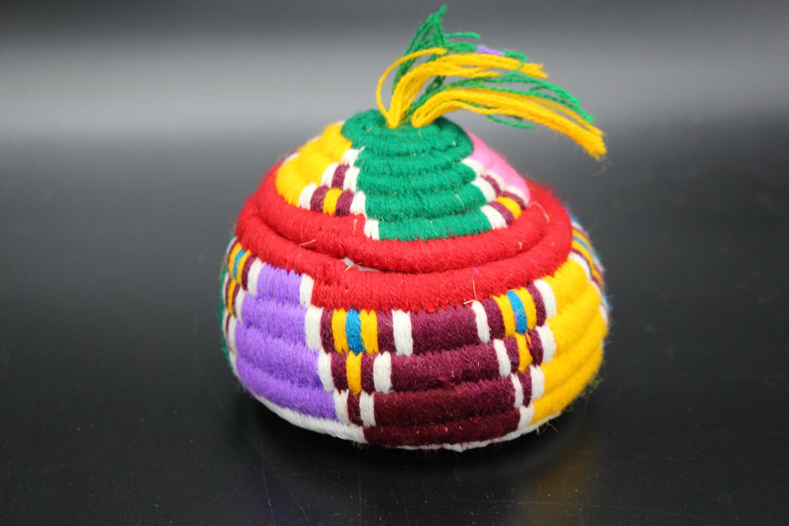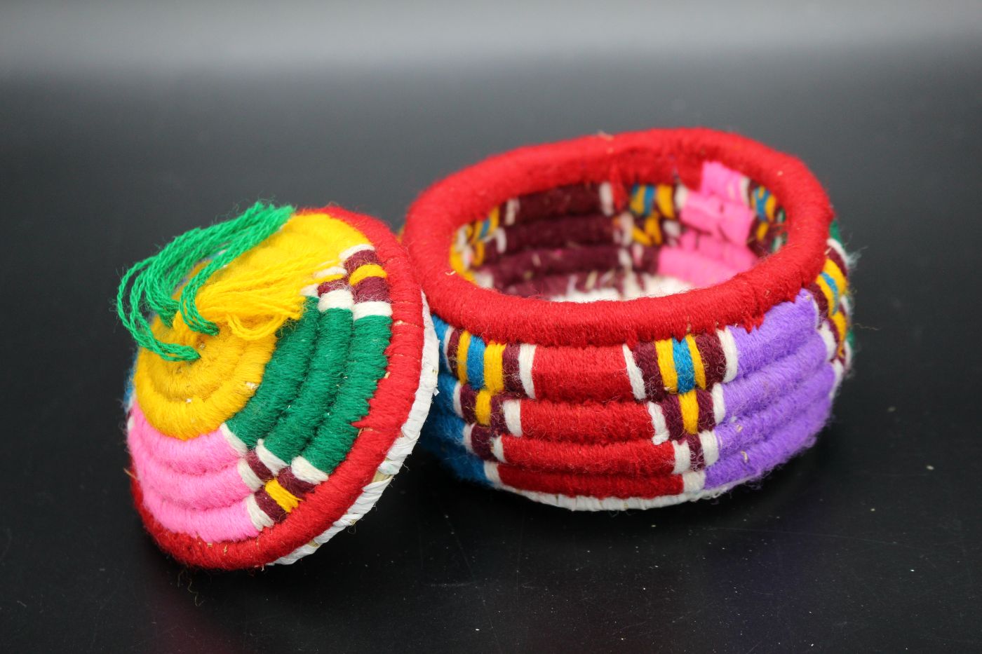 Sie sind gefertigt aus Bast und mit Wolle umwickelt.