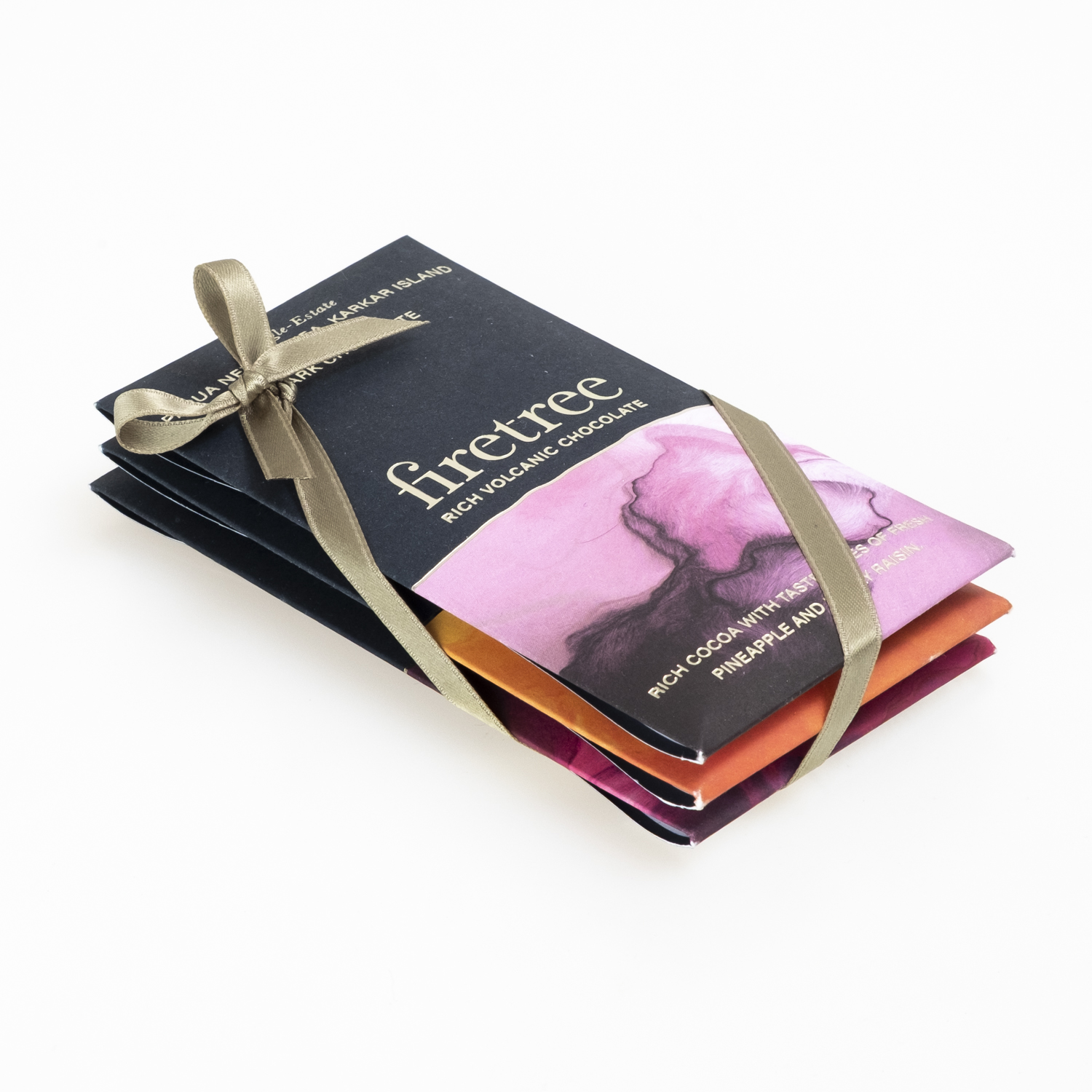 Assortiment von 3 Firetree Schokoladen à 25g – ein perfektes Geschenk für Geniesser: