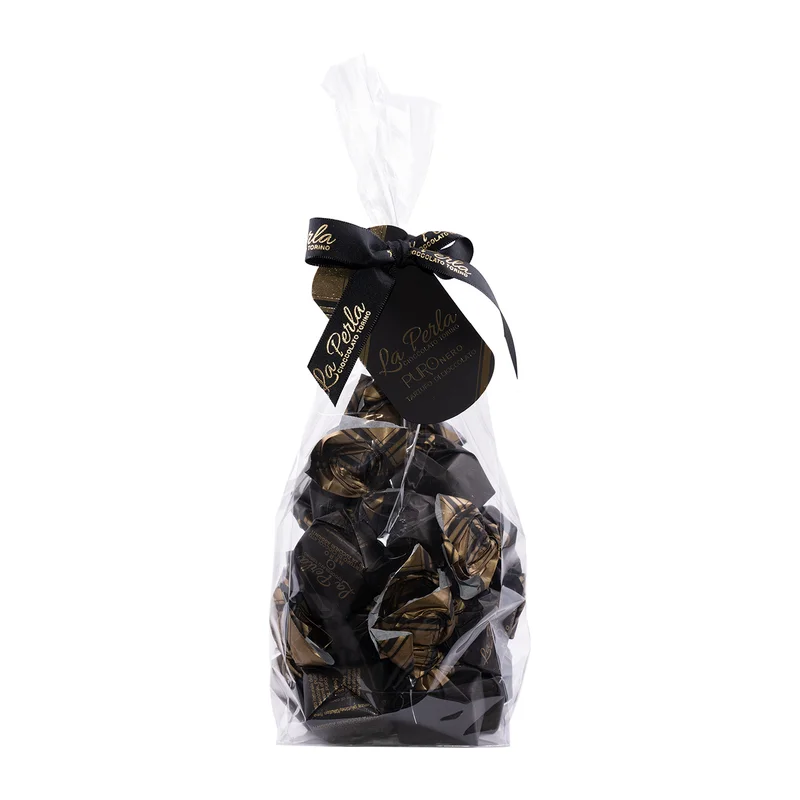 Tartufo Puro Nero | Schokotrüffel ohne Zucker Zusatz La Perla di Torino Tartufo Puro Nero sind schon ganz besondere Schokotrüffel, werden sie doch ohne den Zusatz von Industrie-Zucker hergestellt und stattdessen mit Maltit gesüßt. Dennoch sind die Tartufo Puro Nero ein wahrer Genuss, eine Auszeit, die Du Dir gönnen kannst. Intensive Kakaonoten gepaart mit besten Piemont-Haselnüssen und zarter Cremigkeit, das ist Konditorenkunst. Tartufo Puro Nero | ein Genuss ohne Zucker Zusatz Die La Perla di Torino Tartufo Puro Nero sind ein vollmundiger Genuss, der auf der Zunge zergeht. Die aromatische, dunkle Schokolade umhüllt den Gaumen und verbindet sich mit dem runden Geschmack und dem knackigen Biss der gerösteten Piemonteser Haselnüsse (35%). Der beliebte Trüffel wird in dunklem Kakaopuder gewälzt und ist überraschend gelungene Komposition von La Perla Tartufo. Eleganz im Aussehen und Ausgewogenheit im Geschmack. Das Wesentliche, das Exzellenz erreicht. So passen die Tartufo Puro Nero ohne Zucker Zusatz nicht nur zu Tee oder Kaffee, sondern auch zu einem guten Glas Rotwein oder einfach so für Zwischendurch. 200g der Tartufo Puro Nero (etwa 14 Stück) sind in einem Geschenkbeutel mit einer handgebundenen Schleife verpackt. La Perla di Torino | 30 Jahre Schokoladentrüffel Sergio Azilli, Sohn eines Bäckermeistes, hat La Perla di Torino 1992 gegründet, nachdem bei ihm eine Glutenunverträglichkeit festgestellt wurde. Nun, wo er nicht mehr als Konditor arbeiten konnte, beschloss er sich die Kunst der Schokolade Herstellung zu erlernen und Chocolatier zu werden. Er entwickelte eine Linie handgefertigter Tartufo Dolce aus Zutaten von bester Qualität, wie fair gehandelter Kakao und Tonda Gentile Trilobata-Haselnüssen aus dem Piemont. Seine Leidenschaft für gute Schokolade hat Sergio an seine Tochter Valentina weitergegeben, die bereits im Unternehmen arbeitet und es einmal fortführen wird. Mit viel Liebe zum Detail bringt La Perla di Torino den authentischen Geschmack guter Schokolade nach Turiner Tradition in die ganze Welt. Entdecke die Schokoladentrüffel von La Perla di Torino. Was ist das Besondere an den italienischen Trüffelpralinen? dunkle Schokolade 35% Piemonteser Haselnüsse ohne Industriezucker mit Maltit gesüßt Glutenfrei Palmölfrei ohne Milch ohne genmanipulierte Zutaten ohne Farbstoffe ohne hydrierte Fette