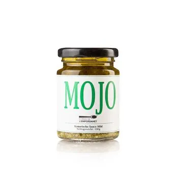 Die Kanaren sind immer eine Reise wert, nicht nur wegen des Klimas. Auch die Küche ist traditionsreich und eigenständig. Zu den bekanntesten Speisen der Kanaren zählt sicher die Würzsoße: Mojo. Es gibt sie in grün und rot, und auf den Kanaren wird sie meist zu Papas Arrugadas serviert – kleinen, mit viel viel Salz gekochten runzligen Kartoffeln. Die kleine Manufaktur Labuela Flora aus Tenerife befindet sich im Besitz von den Geschwistern Teresa und José. Die Herstellung erfolgt handgemacht nach Oma Floras Rezepte, die seit Generationen in der Familie weiter gegeben wurde. Versuchen Sie die Mojo Verde als Dip zu Kartoffeln, Gemüse oder Fisch, auf geröstetem Weißbrot als Vorspeise, als Marinade zu Fleisch oder zu Salaten wie eine Vinaigrette.