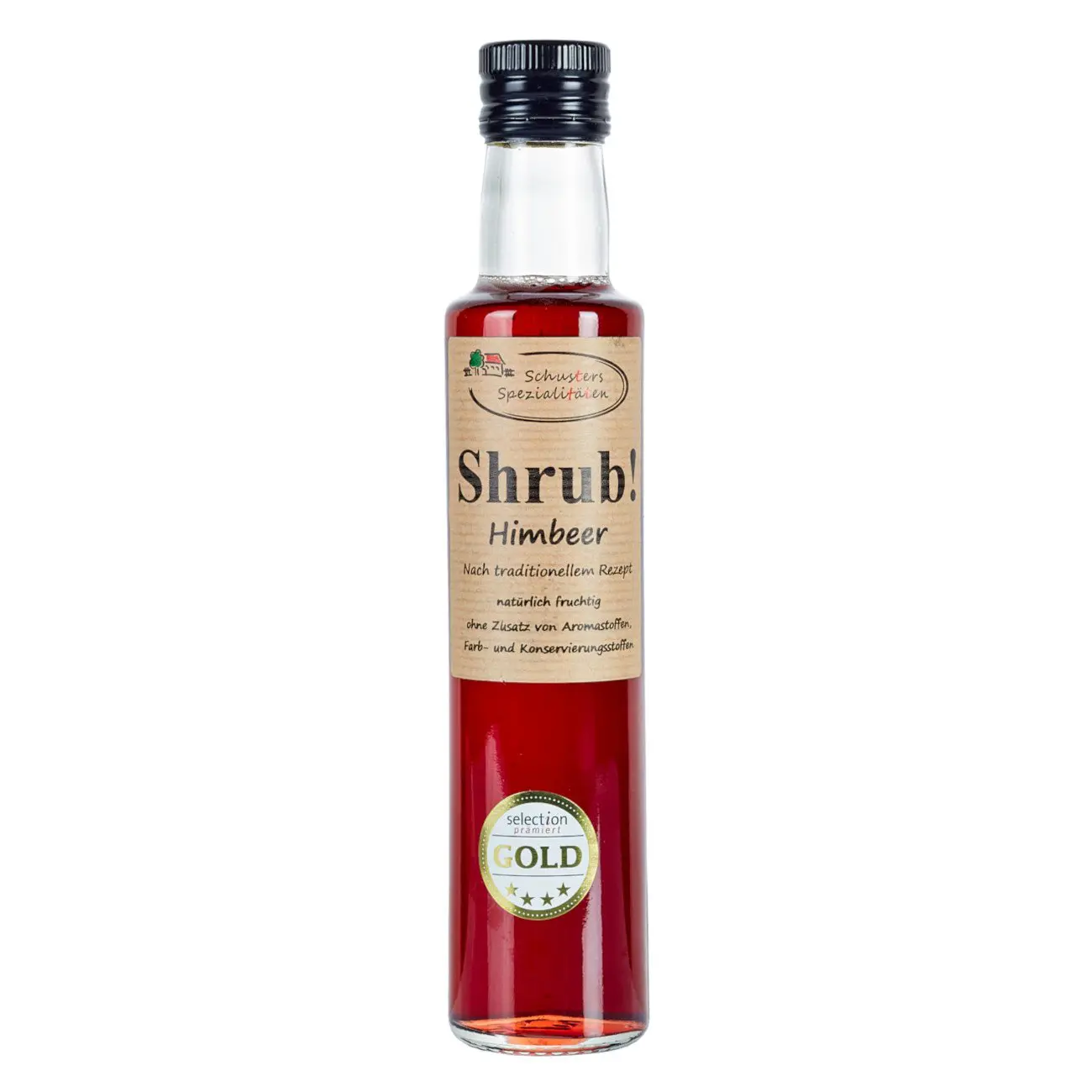 Shrub! Himbeere besteht aus aromatischen Himbeeren, kombiniert mit Bio-Apfelessig naturtrüb und Zucker. Shrub! Himbeere ist der absolute Klassiker unter den Shrubs.
