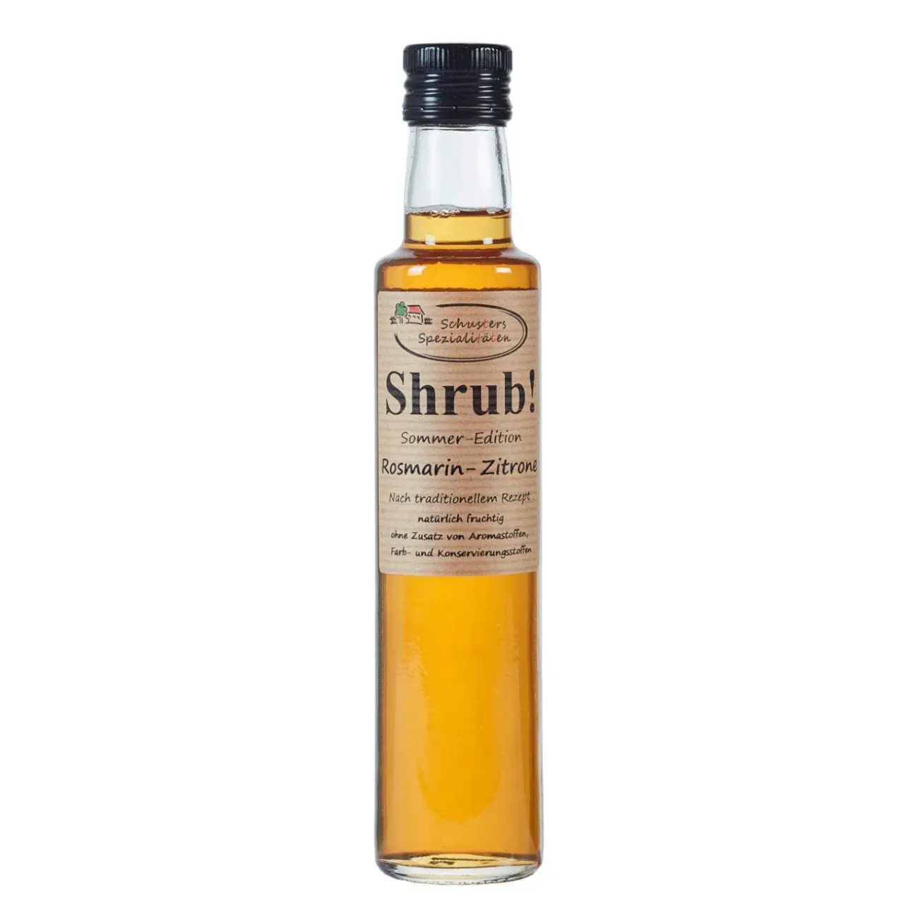 Shrub! Rosmarin-Zitrone besteht aus Rosmarin und Bio-Zitronen, kombiniert mit Bio-Apfelessig und Zucker.