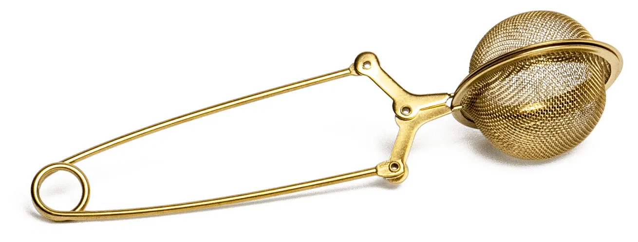 Teezange Größe M (Ø 4,5cm) – goldfarbenDauerfilter Teezange Teesieb GewürzsiebTEA INFUSER CLIP Teezange aus Metall, goldfarben, für Teekannen und Teetassen zum einfachen Zubereiten von Tee. Passend für jede Teevariation und spülmaschinengeeignet. Maße (alle Angaben ca.):Durchmesser: 4,5cmLänge: 15,5cm Farbe: goldfarben Gewicht: ca. 20g Herkunft: China Versandgewicht: 180g
